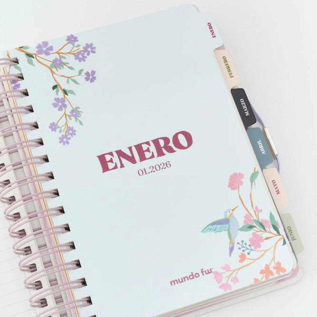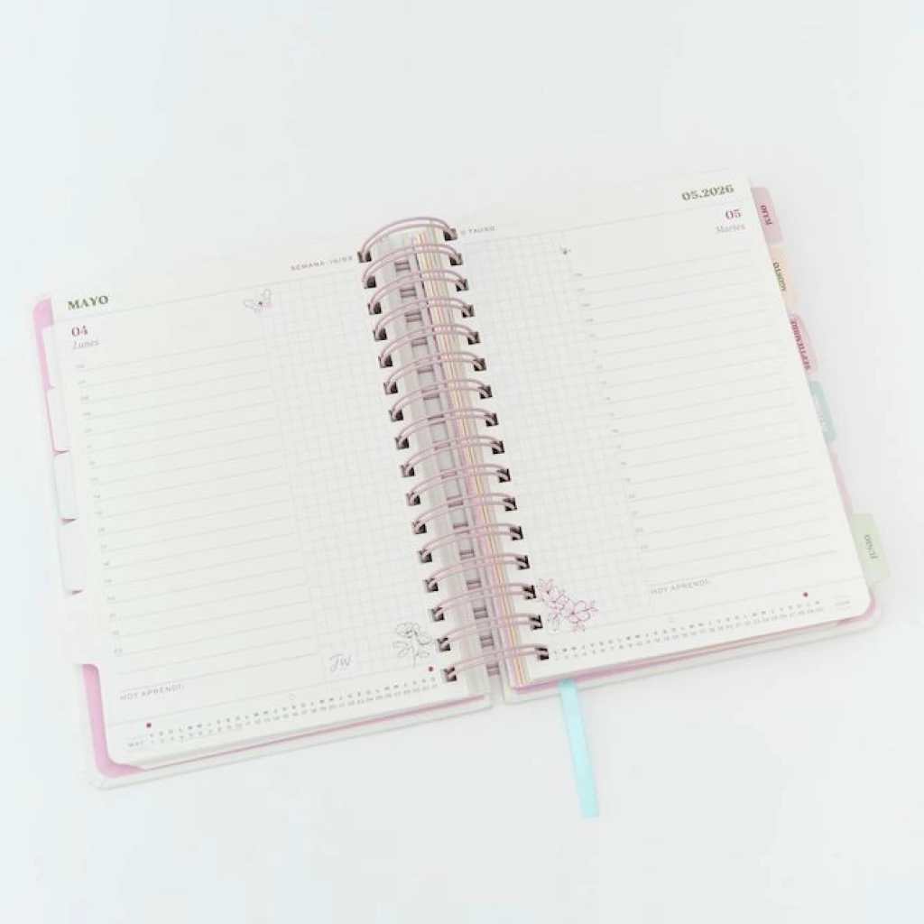 Ideal para las que aman escribir sin límites. Con encuadernación en espiral metálico wire, tiene vista diaria de 6 a 23 h, separadores mensuales y detalles florales para colorear. Forrada e impresa en lino, ¡es tan linda como práctica!
