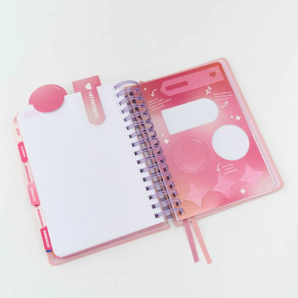 Con encuadernación en espiral metálico wire, diseño renovado y papel de 80g, la Agenda Trend es tu aliada ideal para organizarte con onda. Llena de color, juegos y frases que inspiran, es perfecta para planificar tu día con estilo, buena vibra y mucha magia.