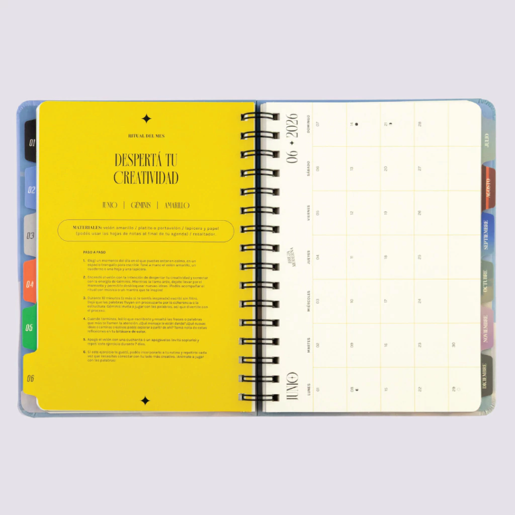 Cada mes, un signo zodiacal y su color asociado te invitan a conectar con tu energía. Su diseño y contenido se renuevan totalmente ¡nunca es igual al año anterior! 🔮🌙✨