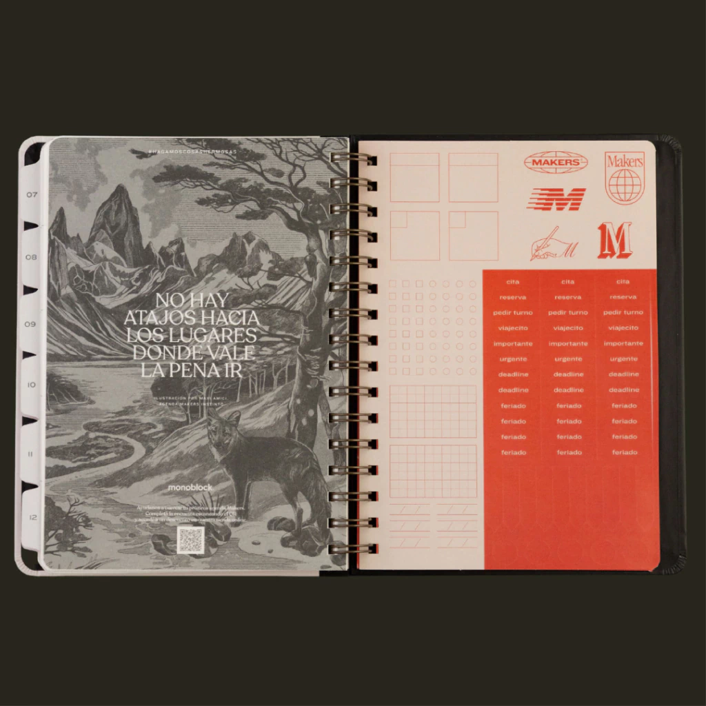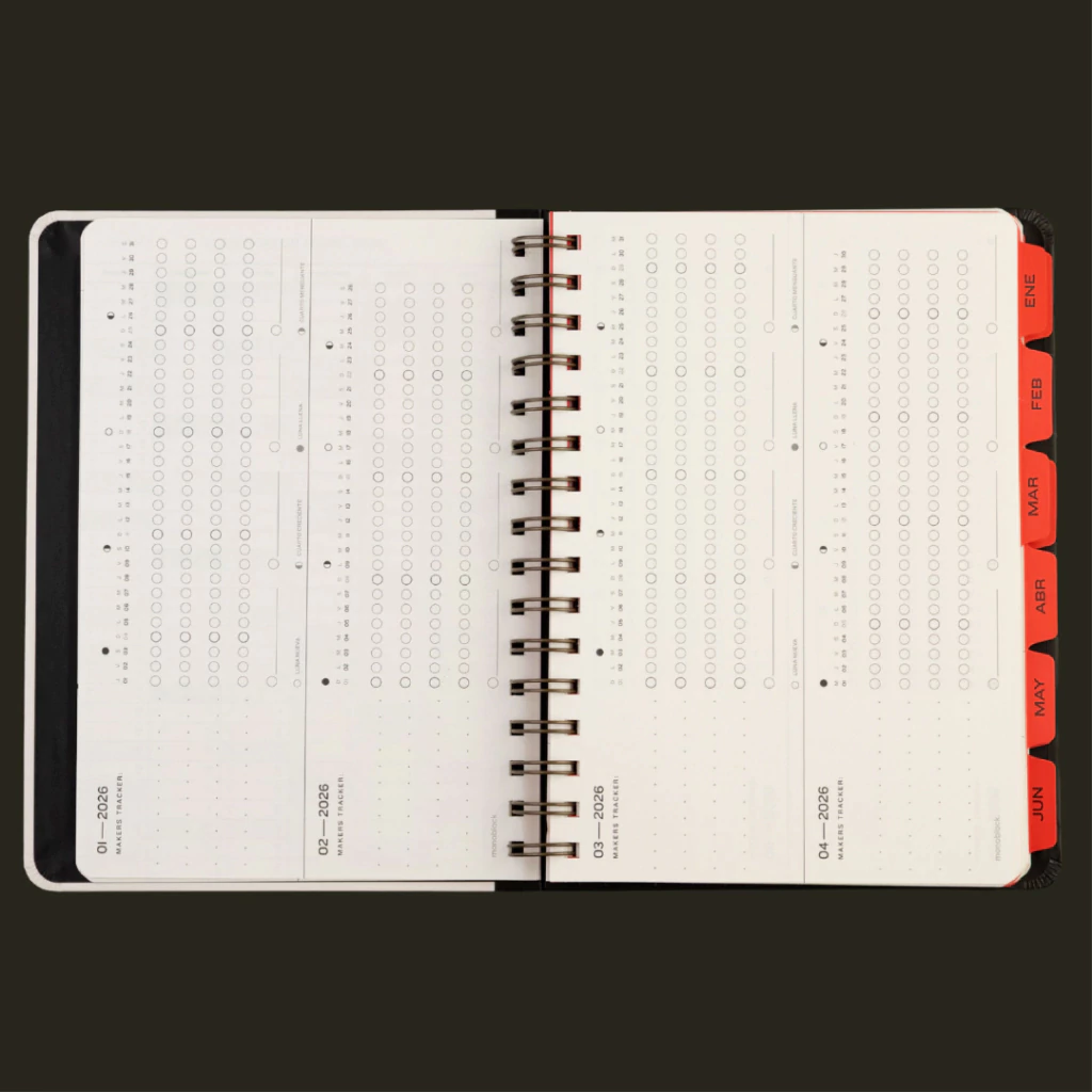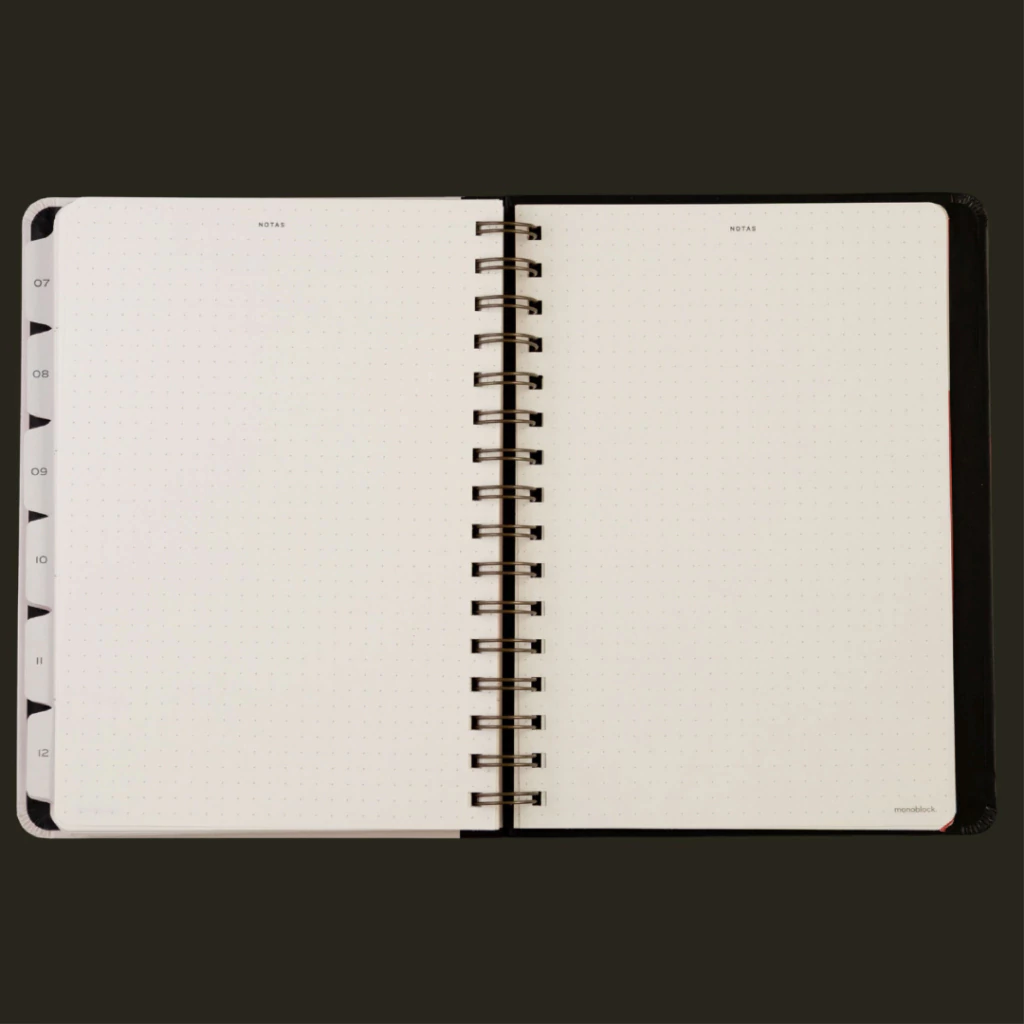 Esta colección está pensada para mentes creativas que valoran el buen diseño y la simpleza. Con un estilo minimalista y atemporal, ofrece un espacio claro para organizar tareas, listas y objetivos. Su vista semanal en formato horizontal incluye amplio espacio para notas, ideal para quienes trabajan con listas y distintos métodos de planificación. Además, sus hojas punteadas estilo bullet journal brindan flexibilidad para escribir, dibujar o bocetar libremente.