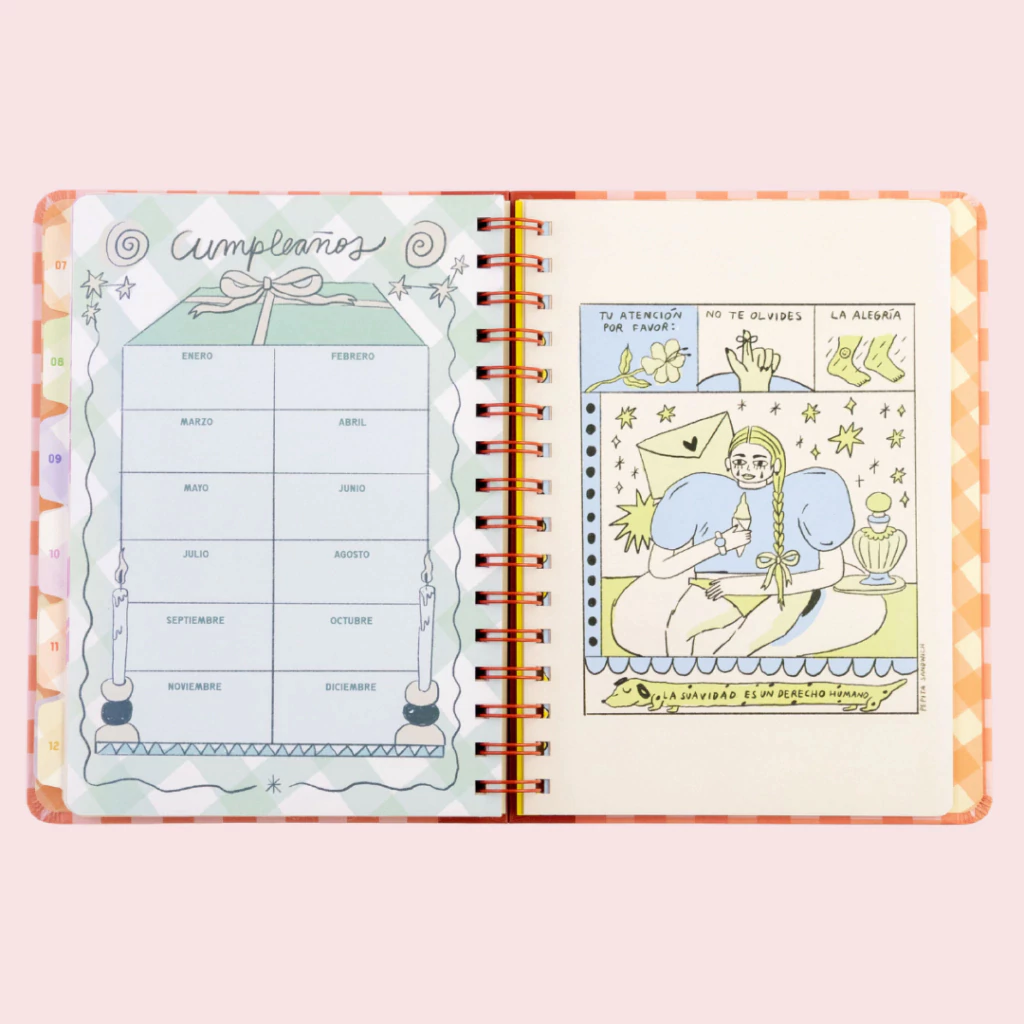 Completamente ilustrada por Pepita Sandwich, esta agenda es una obra de arte que retrata con imaginación e inteligencia los temas que atraviesan nuestra vida cotidiana: vínculos, crecimiento personal y todas esas cosas que nos hacen reír y emocionarnos al mismo tiempo.