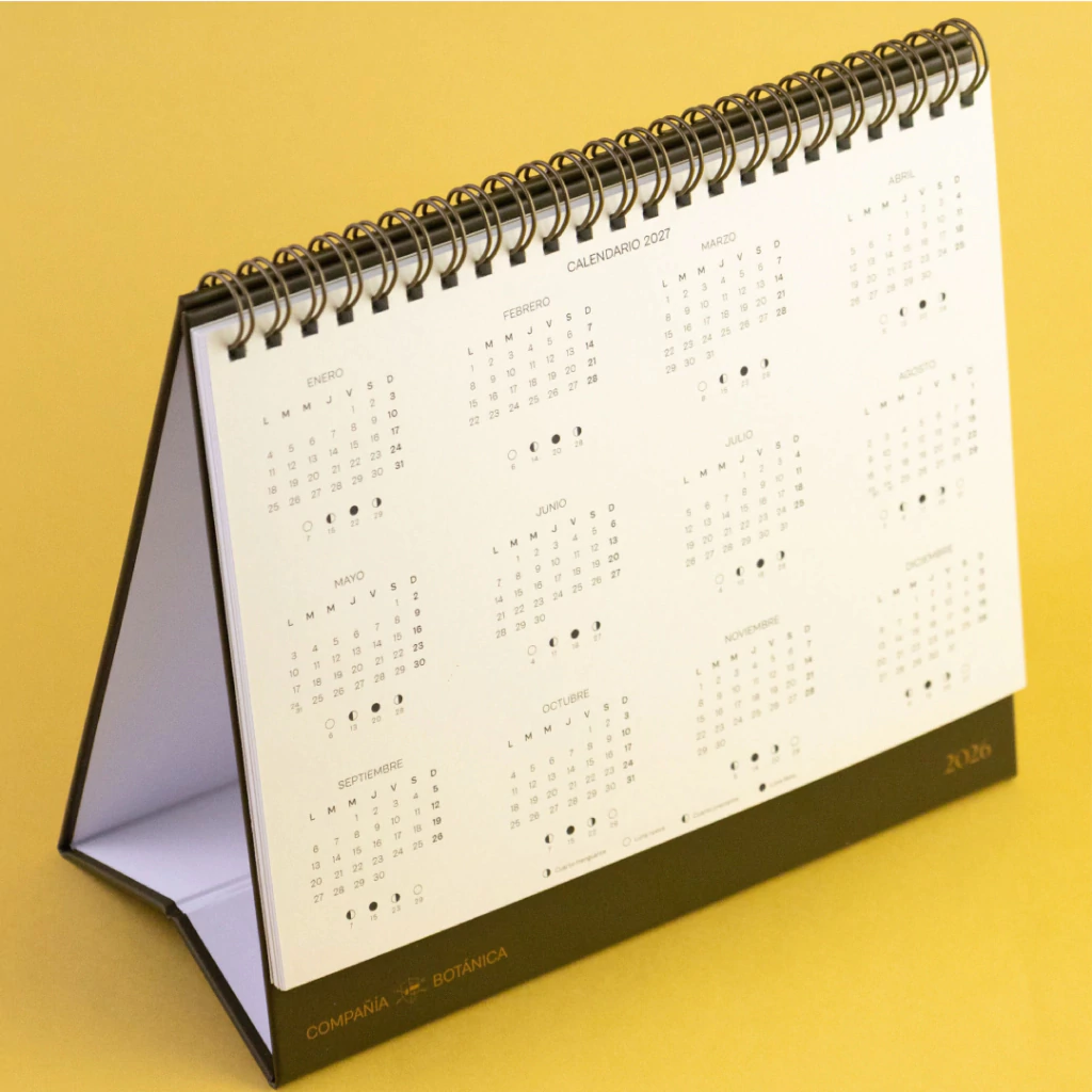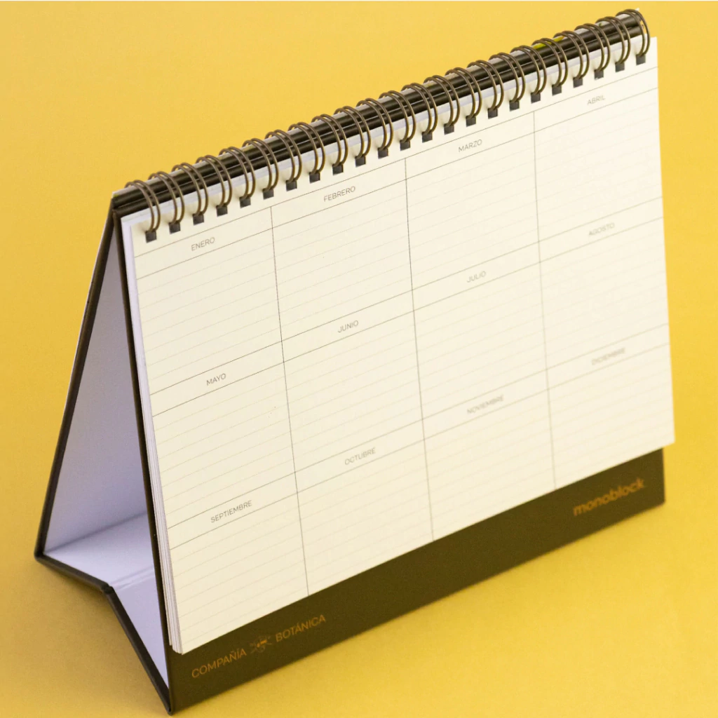 Con anillado práctico tipo carpa para escritorio, es fácil de consultar y siempre visible: perfecto para organizar en familia o tenerlo en tu espacio de trabajo.