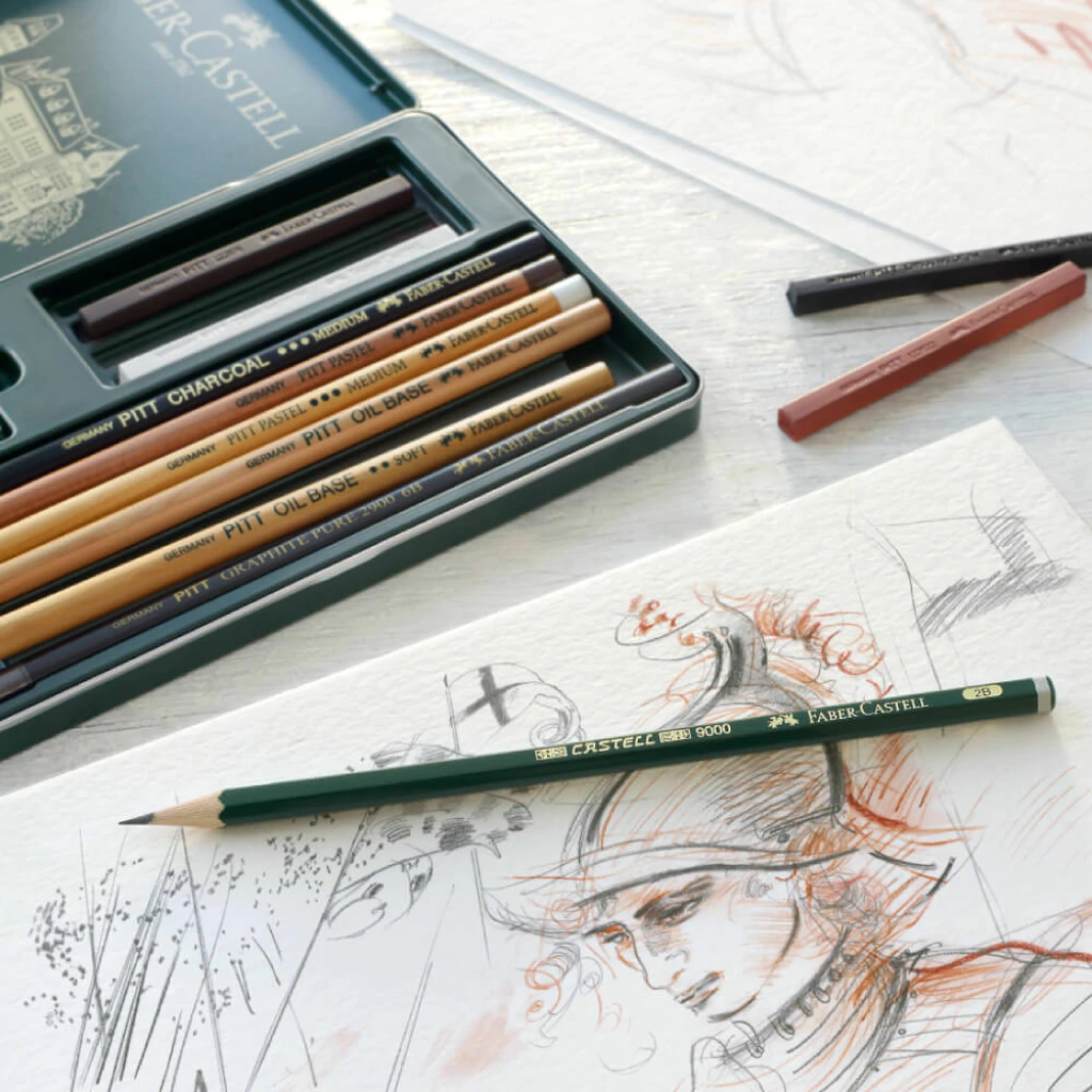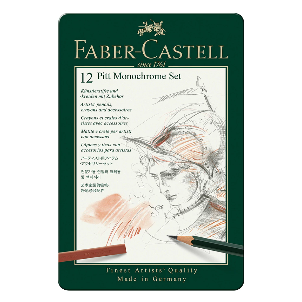 Los colores monochrome clásicos - negro, blanco, sanguina y sepia - pueden encontrarse a diario en casi cualquier clase de arte, ya que hacen que los dibujos cobren vida con vitalidad y expresión. Esta antigua tradición de dibujo figurativo se retrotrae al Renacimiento, acentuado con blancos y sombras oscurecidas con negro. Las tizas Pitt monochrome también se remontan a la larga tradición del dibujo figurativo, razón por la cual las tizas especiales para abocetar son más duras que las tizas pastel convencionales. Por este motivo, las líneas no desaparecen por completo cuando se difuminan. Las tizas sepia y sanguina se complementan con los lápices de dibujo grasos y no grasos para realizar bocetos y concretar detalles