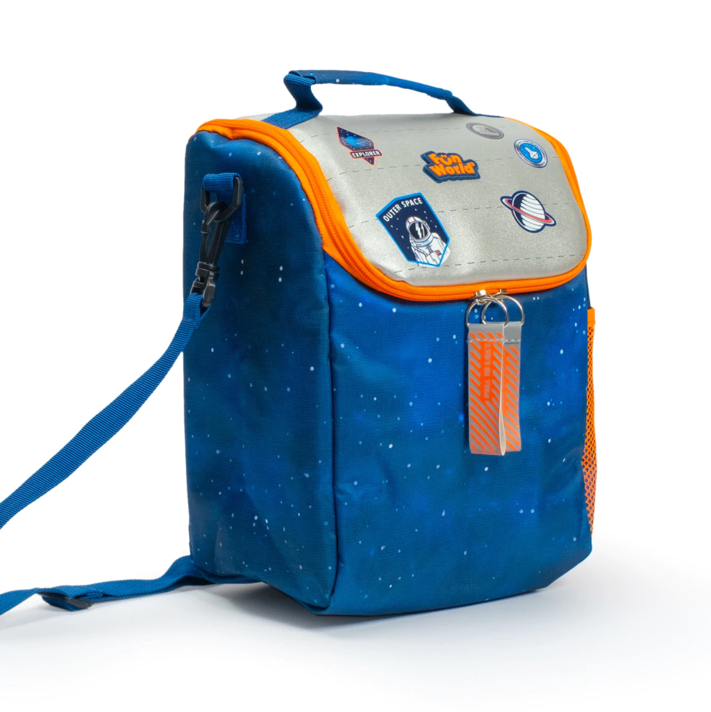 Esta lunchera de diseño exclusivo cuenta con un amplio espacio para alimentos. Cuenta con un bolsillo principal y un bolsillo en el costado con red para mantener la botella.