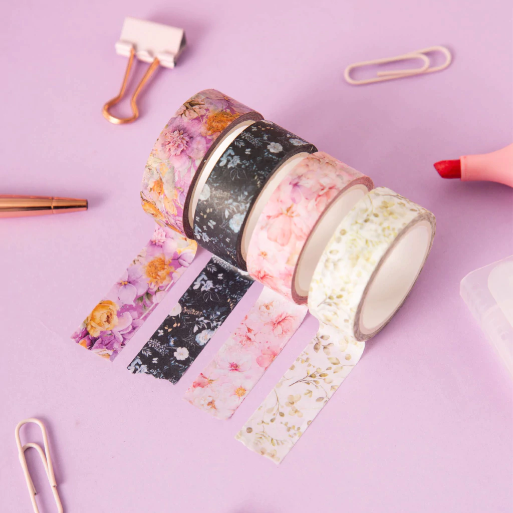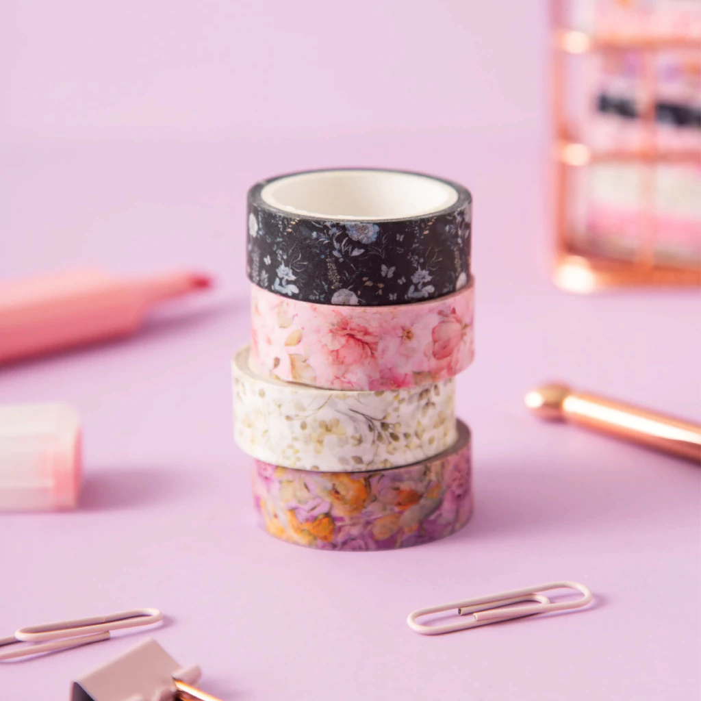 Pack x4 washi tapes con diseño y STAMPING HOLOGRÁFICO De 1,5 cm de ancho x 5 metros de largo ¡Para decorar todos tus proyectos! ✨